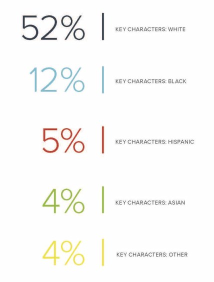 The overwhelming whiteness of the 2017–2018 TV season means that all calculations of race and income for this study are more likely to represent white characters and households. White characters out-ratio Black characters such that we see 4 white characters for every 1 Black character, 11 white characters to every Hispanic character, 13 white characters to every 1 Asian character, and 14 white characters to every character included in the “Other” category—which typically identifies persons of mixed ethnicity or race. There is, in fact, no representation at all in the entire sample of Native/Indigenous characters, an extremely excessive oversight on behalf of casting in Hollywood.