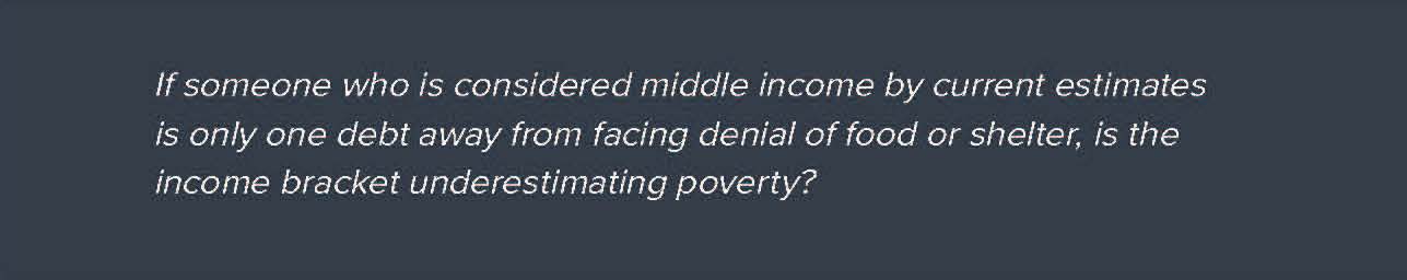 Indeed, observations from hunger experts like Josh Gwin of Marion Polk Food Share shows that people who are only one missed utility bill away from hunger or eviction often depend on social services like food drives,[21] which bears questioning of the ways income have been calculated by scholar and the general public alike given inflation, stagnant wages, and increases to the cost of living throughout the United States. If someone who is considered middle income by current estimates is only one debt away from facing denial of food or shelter, is the income bracket underestimating poverty?