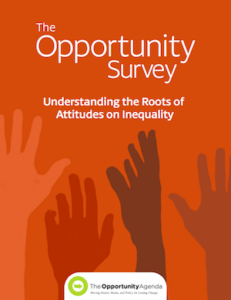 In 2014, The Opportunity Agenda commissioned a groundbreaking nationwide survey to examine what the U.S. public thinks about opportunity in America and to measure public support for policies that expand opportunity across a range of issues, including jobs, education, criminal justice reform, immigration, and housing. Additionally, the research sought to gain a deeper understanding of the multiple factors that influence attitudes on inequality, contribute to an individual’s worldview, and predict people’s willingness to take action on issues they care about. Together, the survey’s findings offer critical insights for social justice leaders and organizations seeking to move hearts, minds, and policy.