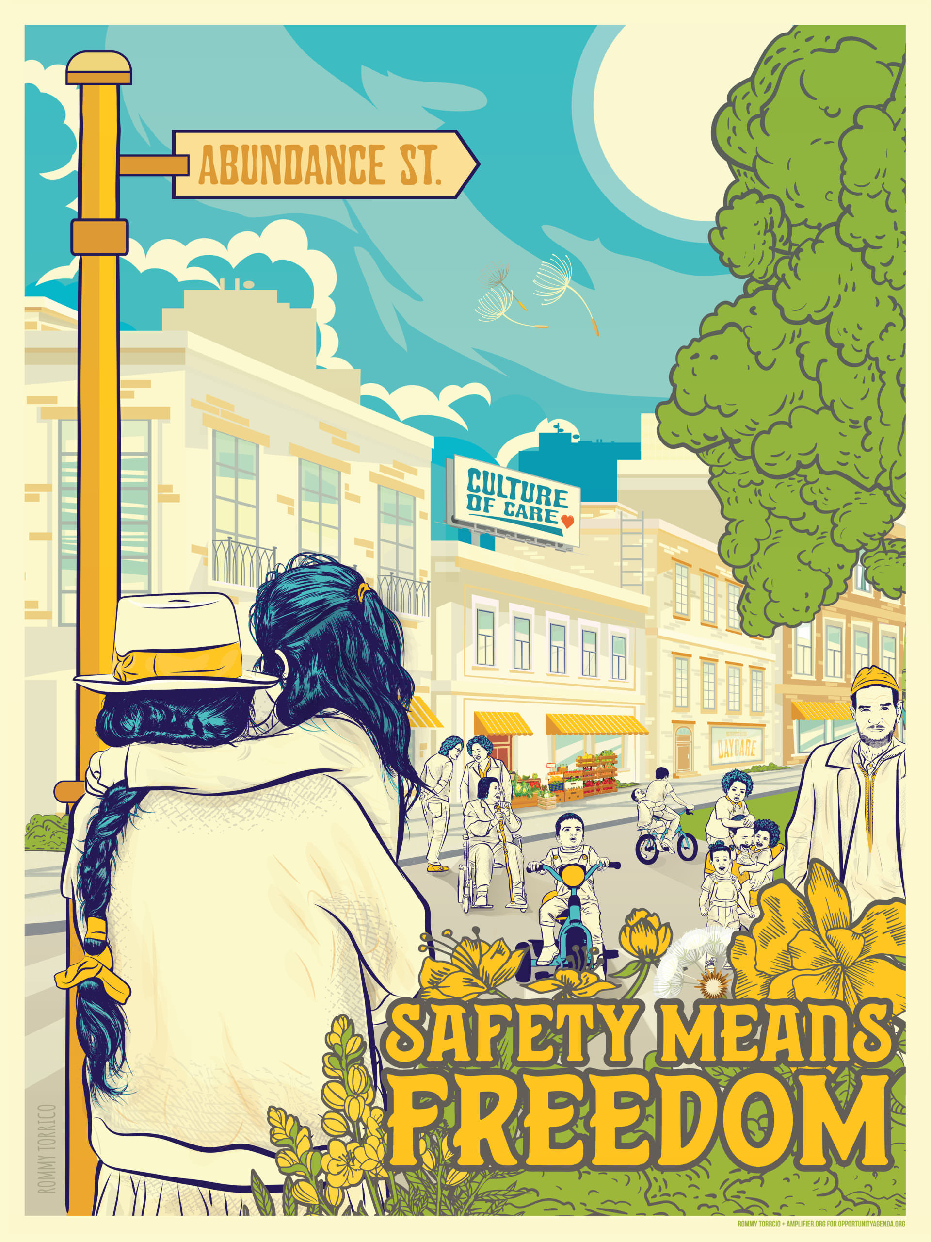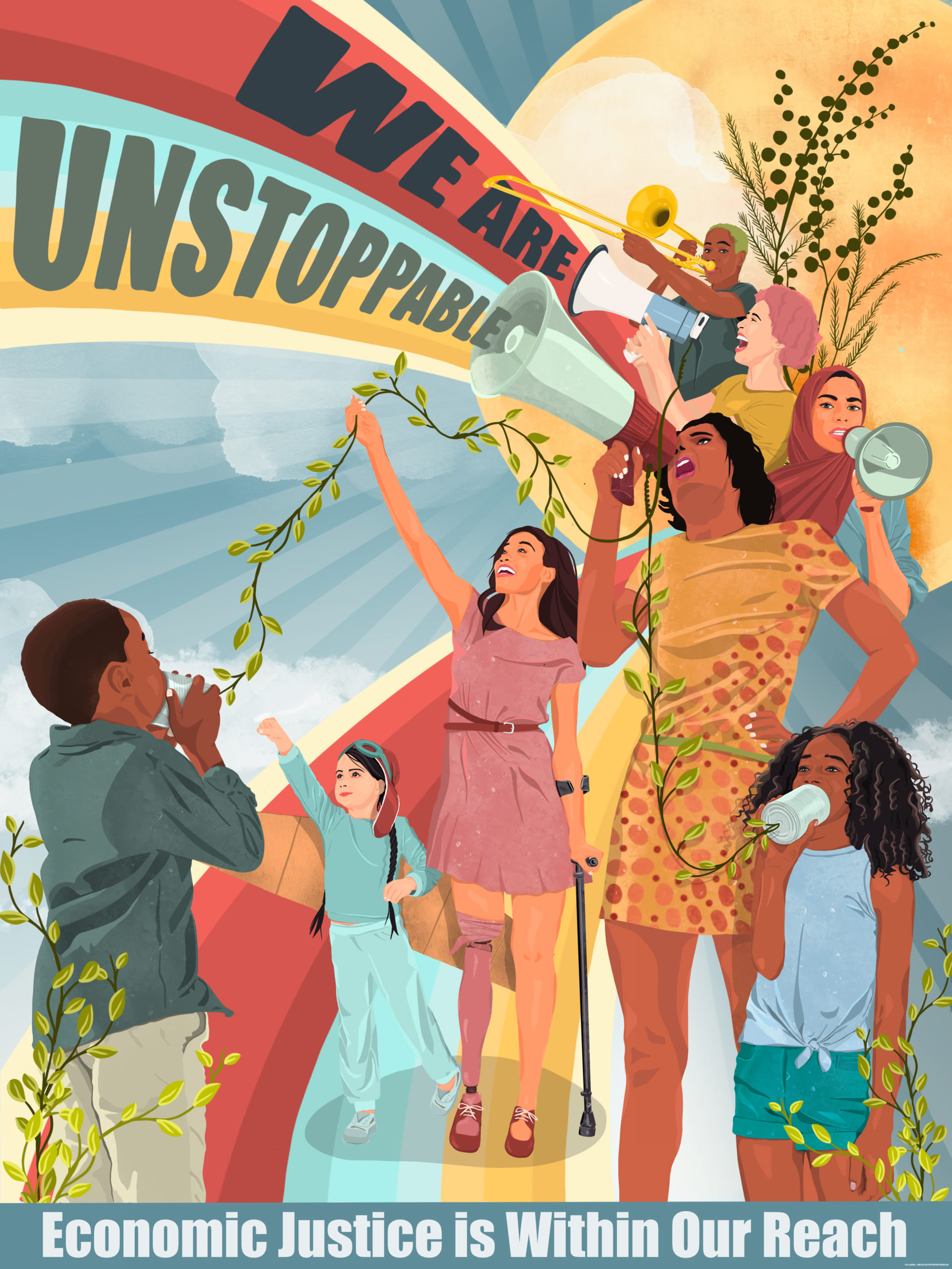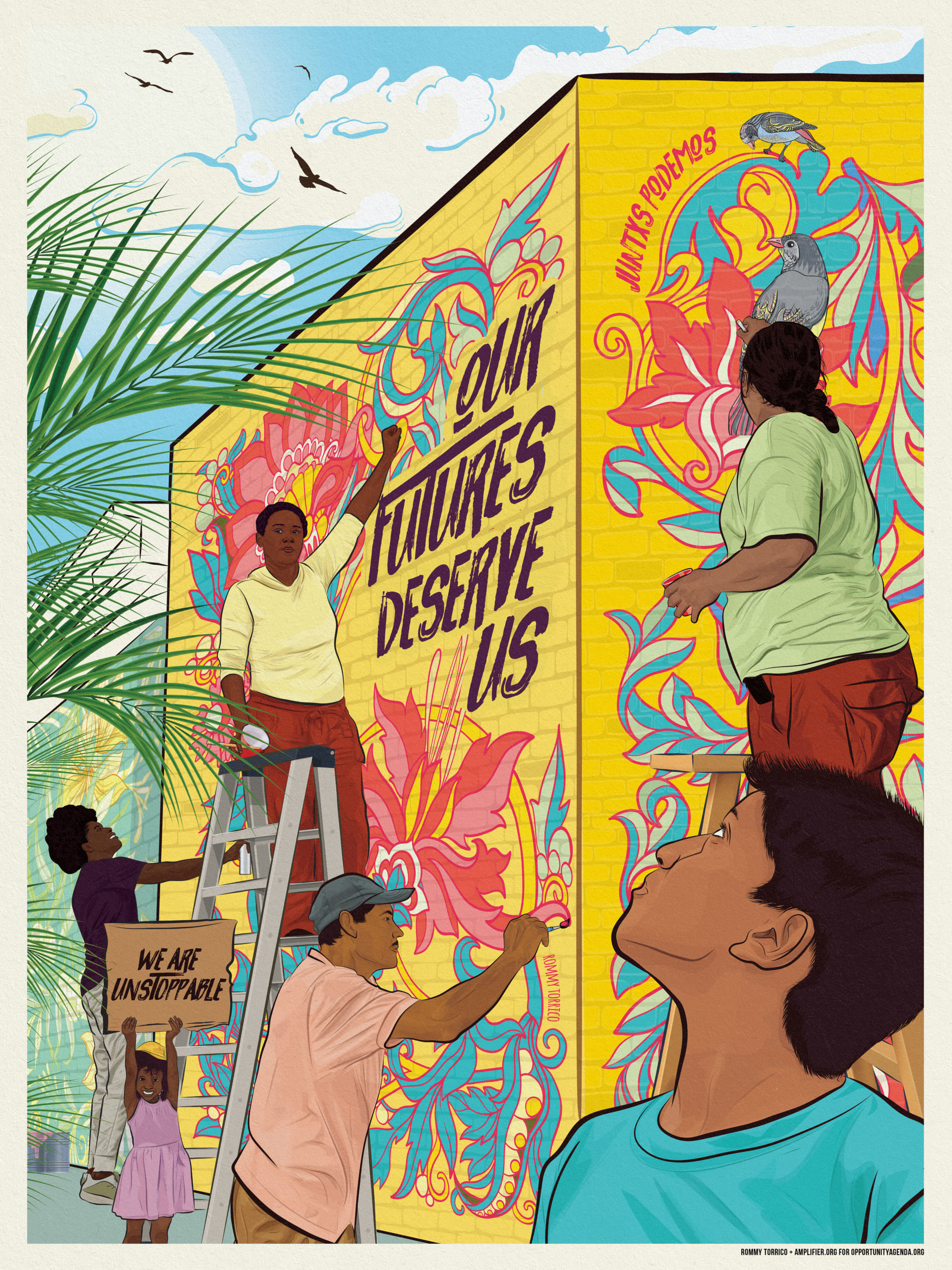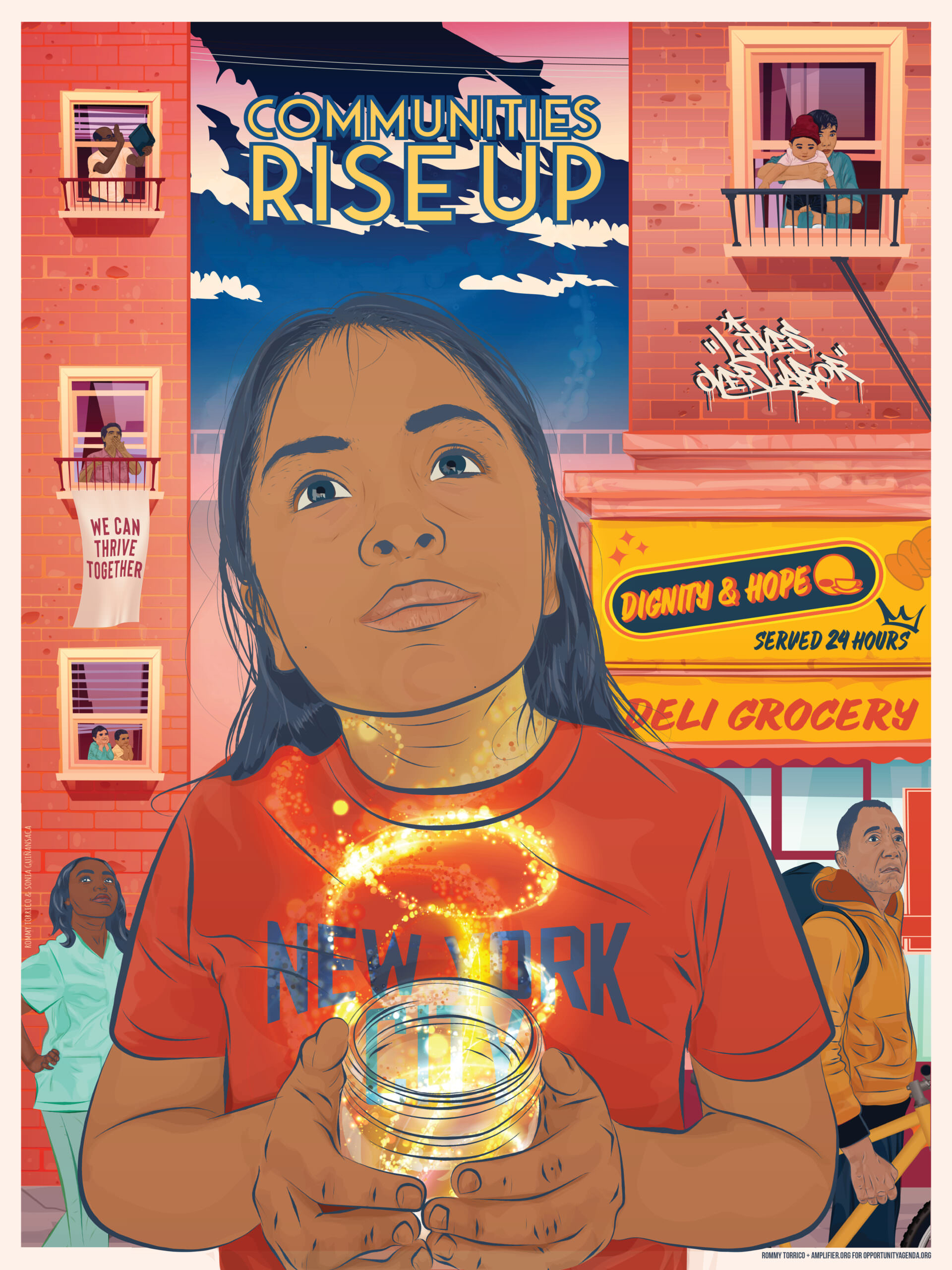 This is why we partnered with Amplifier to create We Can Thrive Together: Visioning Economic Justice for All, an Economic Justice discussion guide that includes ten original works of art by Alex Albadree, Noa Denmon, and Rommy Torrico. These materials are open source, to be used by activists, cultural strategists, teachers, and youth across the country in a rising movement for Economic Justice. Amplifier has also developed four distinct lesson plans on Economic Justice, which will be distributed to 15,000 teachers across the country for their 2021 virtual curricula. (If you are interested in these lesson plans, please see the bottom of this page)